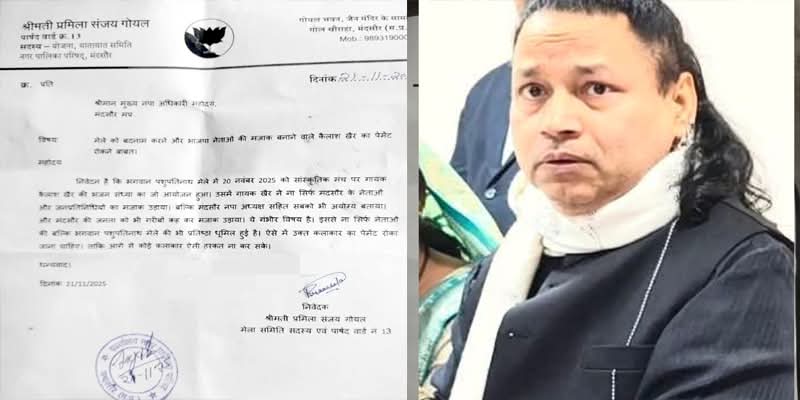 मध्य प्रदेश के मंदसौर में पशुपतिनाथ मंदिर मेले में प्रस्तुति देने वाले प्रसिद्ध गायक कैलाश खेर के एक बयान ने विवाद खड़ा कर दिया है। कैलाश खेर ने अपने प्रदर्शन के दौरान भाजपा नेताओं का मजाक बनाया, जिसमें उन्होंने नगरपालिका अध्यक्ष रमादेवी गुर्जर को अयोग्य बताया और मंदसौर की जनता को गरीब भी कहा।